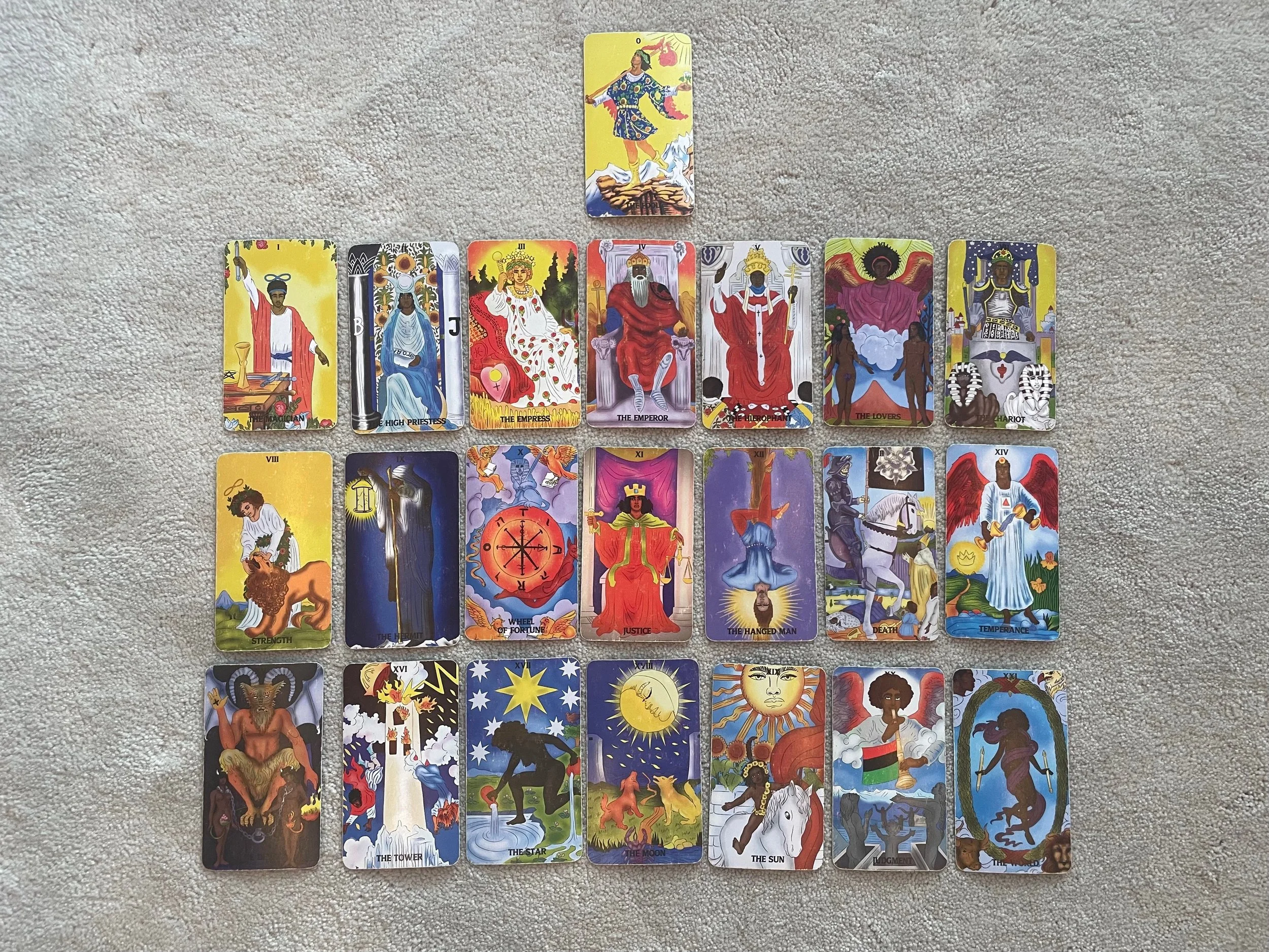 Afro Tarot Journey of the Spirit is a course that will take you through the remaining 15 Major Arcana cards not covered in Afro Tarot Circles, starting with The Chariot and ending with The World. There are only 7 seats available for this course.